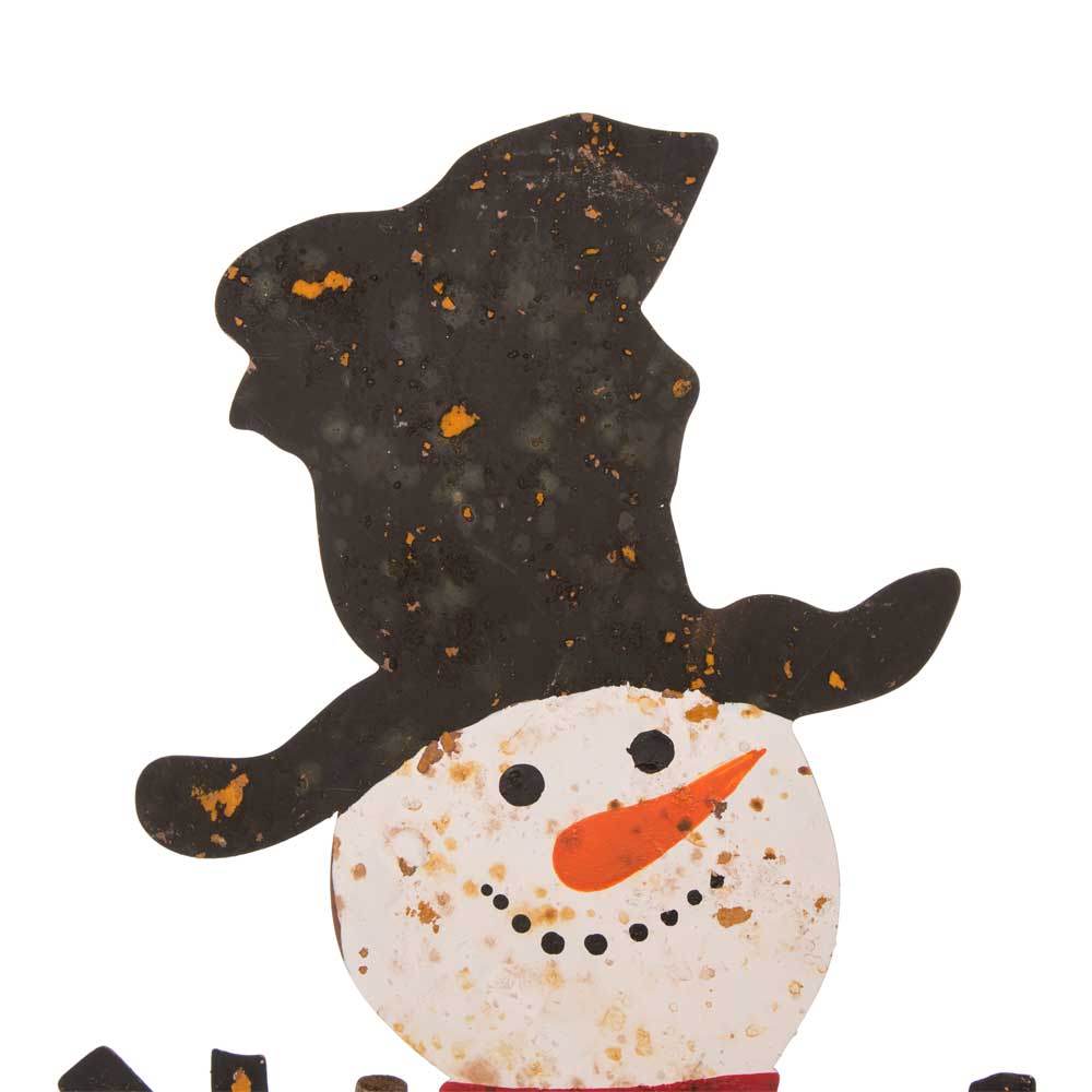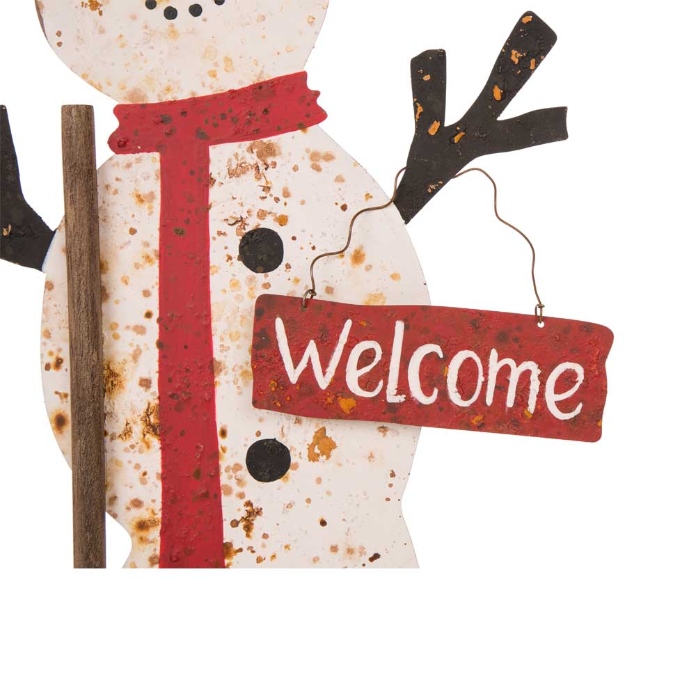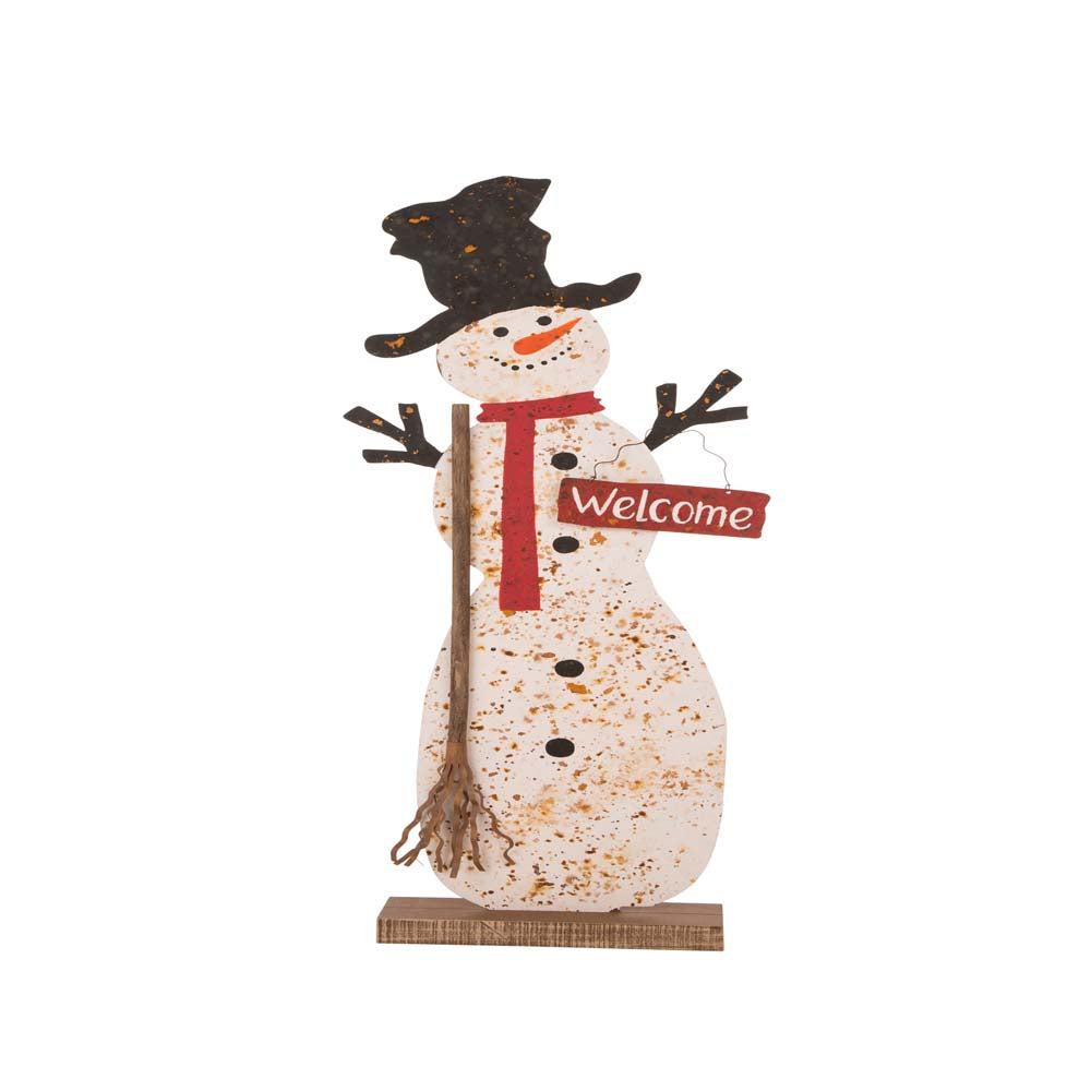 Create a welcoming ambiance at your home with this Glitzhome Snowman Indoor/Outdoor Porch Sign. Freestanding iron snowman features a rustic weathered appearance and is accented with a brown broom and red "Welcome" sign for added charm.