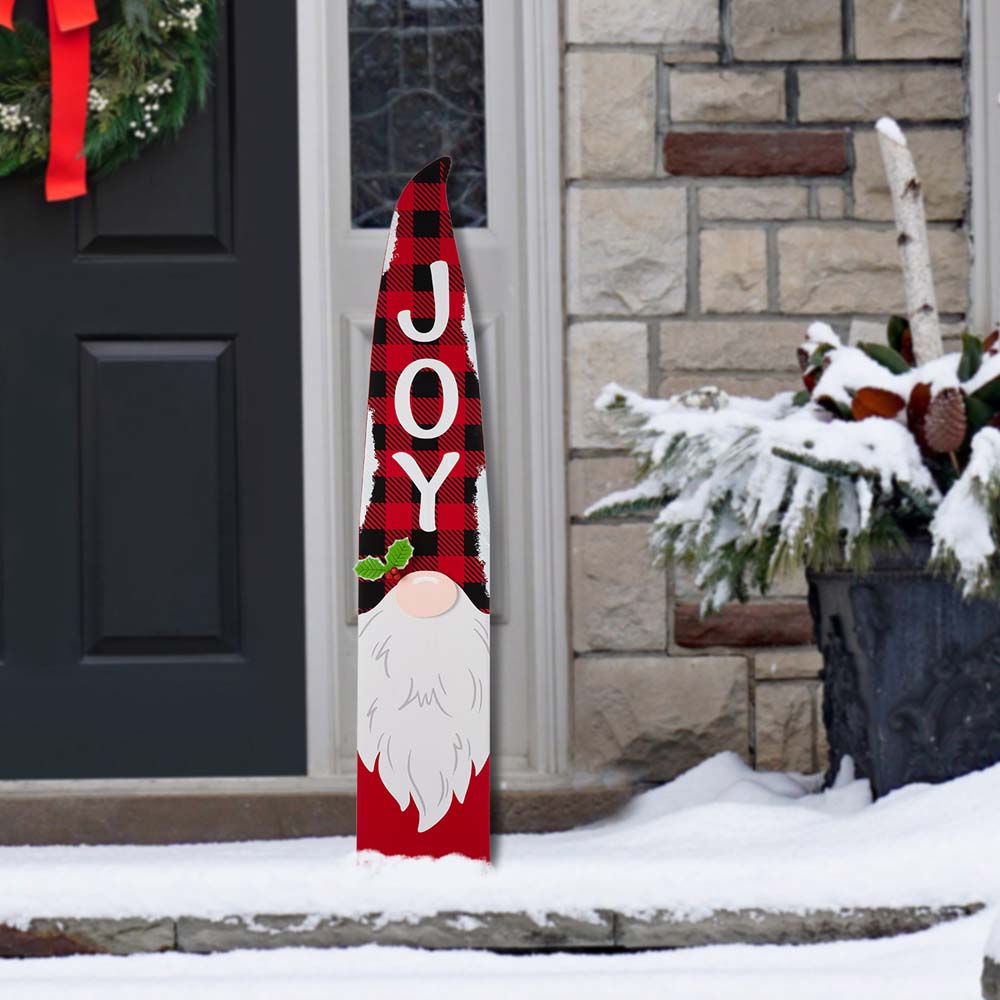 Crafted from textured MDF, this Christmas sign features capitalized JOY on the hat of a gnome. Stylish design with classical red and black plaid brings a traditional and classic feel to your holiday home. Includes a sawtooth hanger for optional wall application.
