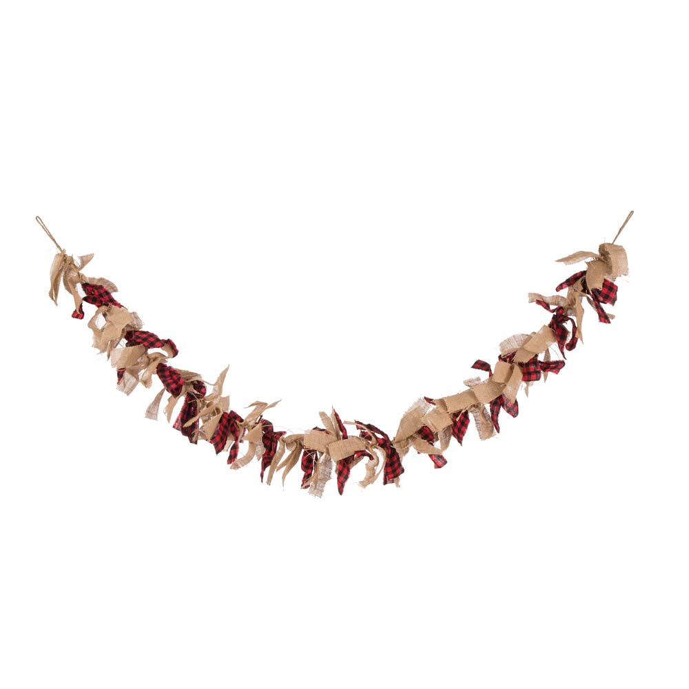 This stunning and unique Fabric/Linen Garland would be excellent to accent your tree and home. It features Red & Black Plaid strips of fabric and linen linked together in a hemp rope to form a messy beautiful Garland.