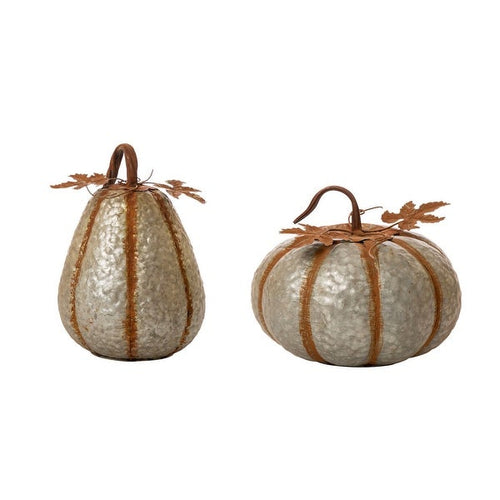 Rustic Galvanized Metal Pumpkin Decor, Set of 2
